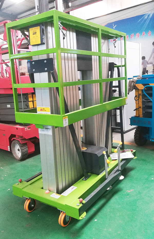 產(chǎn)品簡介:鋁合金升降機(jī)由高強(qiáng)度優(yōu)質(zhì)鋁合金型材精製而成,具有造型美觀、體積小、重量輕、結(jié)構(gòu)緊湊、移動(dòng)方便、升降平穩(wěn)、操作方便、安全可靠等優(yōu)點(diǎn),廣泛用於各行業(yè)大廳、高檔賓館、餐廳、車站、機(jī)場、影劇院、展覽館等場所,是保養(yǎng)機(jī)具、油漆裝修、調(diào)換燈具、電器、清潔保養(yǎng)等用途的最佳安全伴侶。雙柱鋁合金升降機(jī)是單柱鋁合金的升級(jí)版,它具有兩組鋁合金升降支臂(支桿),與單柱鋁合金升降機(jī)相比,它的穩(wěn)定性和載重量大幅度提高,載重量達(dá)到200kg,它的穩(wěn)定性更高,抗風(fēng)性更強(qiáng)、工作檯面尺寸更大,能容納兩個(gè)人同時(shí)在升降機(jī)上工作。雙柱鋁